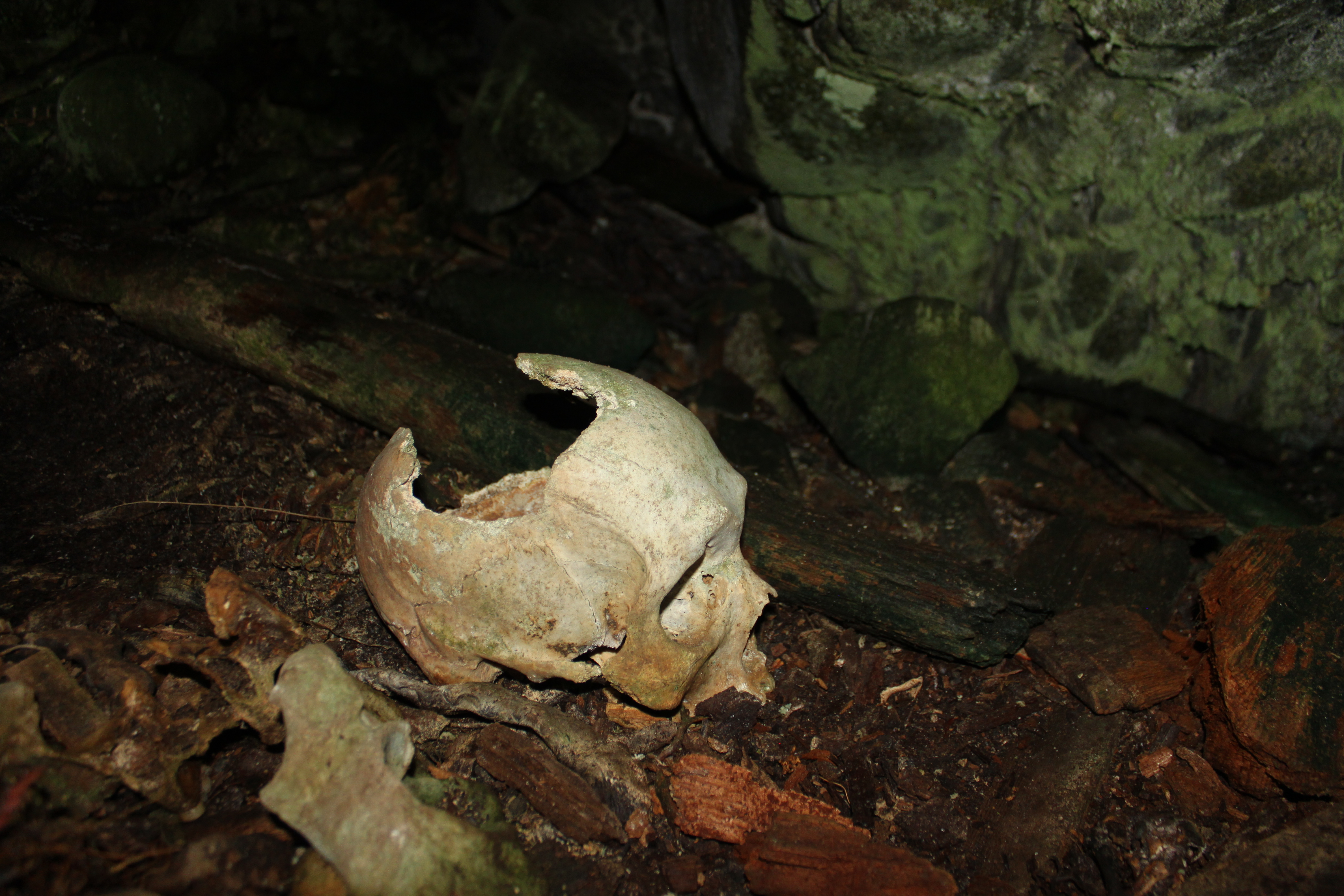 Neither of us spoke as we struggled to come to grips with what we had blindly stumbled into. It was like our minds refused to acknowledge what our eyes were seeing, leaving all of our senses numb. The floor was littered with hundreds of long bones scattered around a score of human skulls and in the back, propped against the wall was evidence of more recent usage.