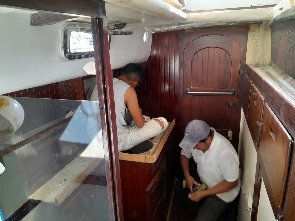With the majority of the work aboard Maiatla completed, we prepared to head up into lake Izabal for a few days for a shakedown cruise. All seemed to be going well with the exception of the boats steering. After replacing two long runs of coper hydraulic lines, I topped the fluid up only to discover a leak at the seal around the helm shaft. Without new seals we would have to tolerate a constant drip of oil down the steering column. I would later learn that the steering pump, devoid of oil for probably over a year, baked in the tropical heat frying all the seals.