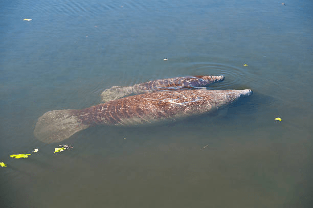 Manatees on the surface.